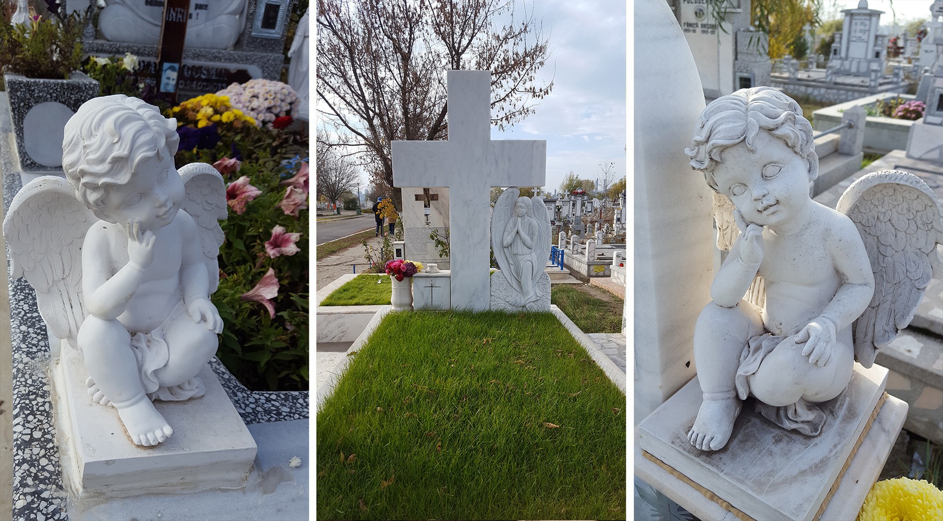 Monumente Funerare Marmura/Granit Executam lucrari complete in cimitire: cavouri, imprejmuiri, montaj cruci, stalpi, vaze, ingeri, etc. din materiale de calitate; marmura, granit, mozaic. Views: 0